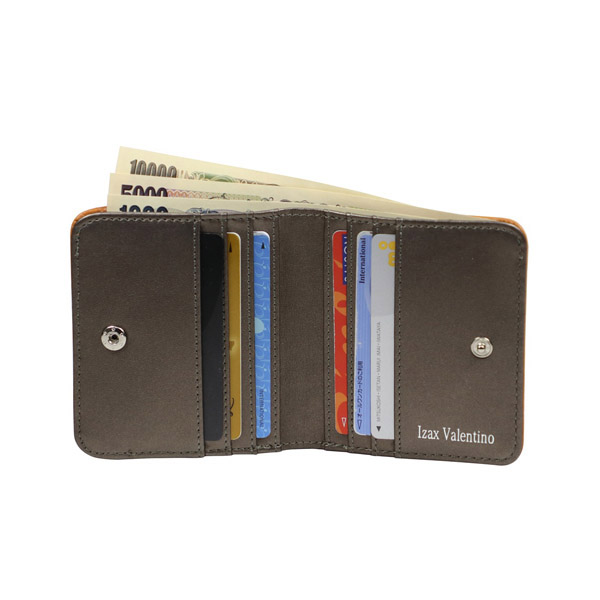 アイザック・バレンチノ訳アリ牛革コンパクト財布 オレンジキャメル