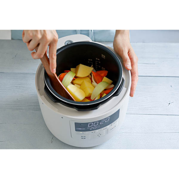 高圧力を均一に加え続け、より味が染み込み、やわらかな仕上がりに。
