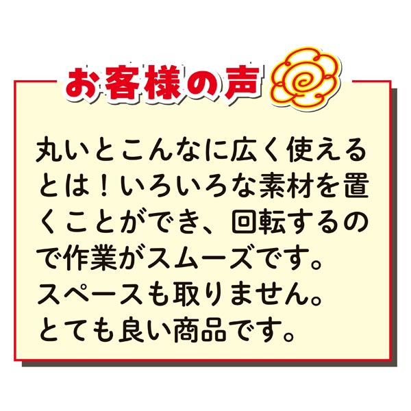 色々な素材を置くことができ、回転するので作業がスムーズです。スペースも取りません、とても良い商品です。