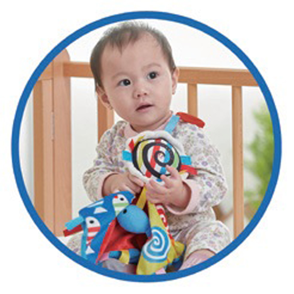 ブランケット型の手あそびおもちゃ。